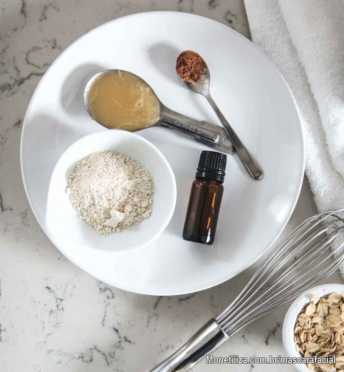 Misture todos os ingredientes até formar uma pasta homogênea, massageie suavemente no rosto e pescoço e deixe agir por 20 minutos antes de enxaguar com água morna.